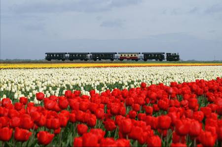 Op 4 mei maakten we de rit met de stoomtram van Hoorn naar Medemblik, onder de noemer “Tijdreis door de tulpen”. Dit werd gepresenteerd als een speciale tulpenervaring die van 15 april t/m 4 mei werd aangeboden, inclusief een tulpengarantie. Die garantie én eerdere beelden gaven ons vertrouwen dat er inderdaad tulpen in bloei zouden zijn. We zijn 7 jaar geleden al eens eerder met deze stoomtram geweest, maar dit leeks ons iets wat een tweede keer de moeite waard maakte voor ons.